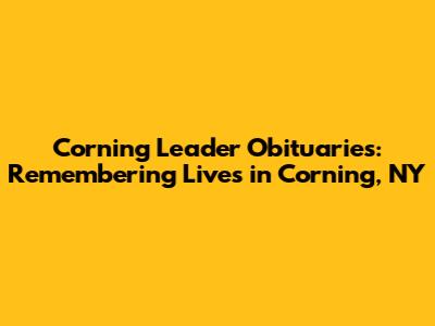 Corning Leader Obituaries: Remembering Lives In Corning, NY